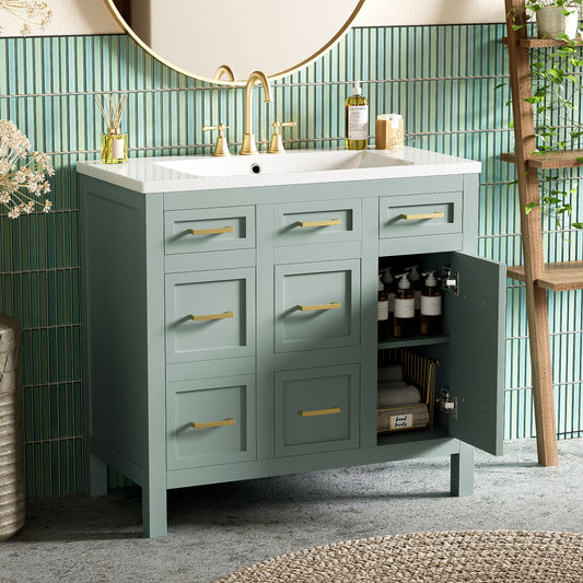 36" Bathroom Vanity Cabinet with Resin Integrated Sink - 4 Drawers, 2 Doors
