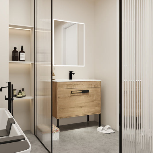 36 Inch Bathroom Vanity With Sink, Freestanding Bathroom Vanity or Floating is Optional Conversion 36*18-00336IMO-1-F-BL9090B(KD-Packing)