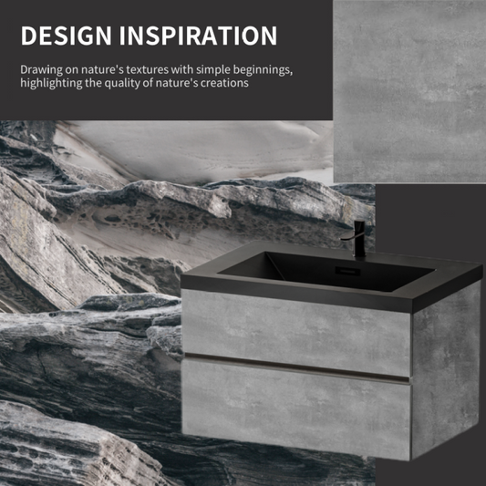 36" Floating Bathroom Vanity with Sink, Modern Wall-Mounted Bathroom Storage Vanity Cabinet with Black Quartz Sand Top Basin and Soft Close Drawers, EDI-Series Cement Grey 24V12-36GR