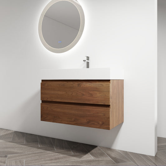 36" Wall-Mounted Bathroom Vanity With Resin Sink, 2-Soft Close Drawers, KD-Package
