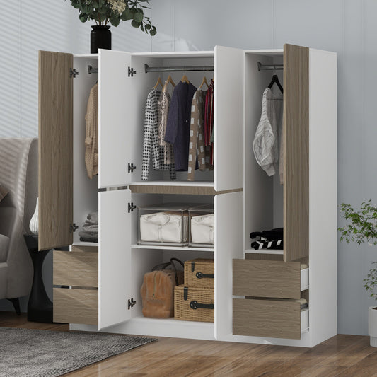 6-Doors Wooden Wardrobe Storage for Bedroom,with 4 Drawers,White+Nature