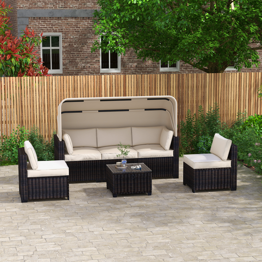 6 Pieces Patio Furniture Sets, Outdoor Rattan Daybed with Retractable Canopy, Outdoor Sectional Sofa Set with Adjustable Backrest, Chaise Chair Sunbed for Garden Poolside Backyard-3