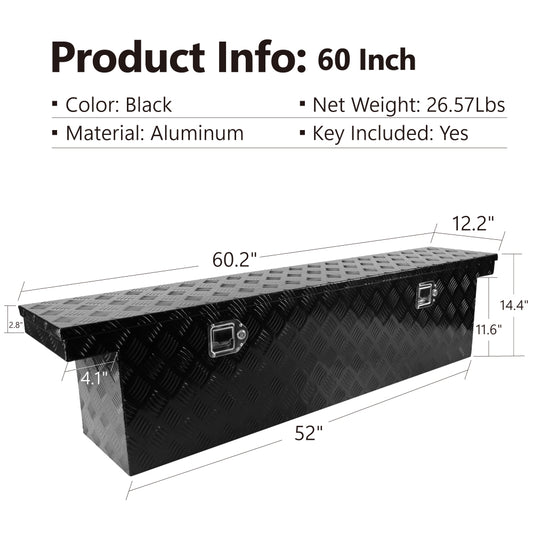 60.2"(L) x 12.2"(W) x 14.4"(H) Pickup Truck Bed Tool Box Trailer Tool Box for Bed of Truck,Aluminum Stripes Toolbox for Truck RV Tralier,Chrome Latch,Black Surface