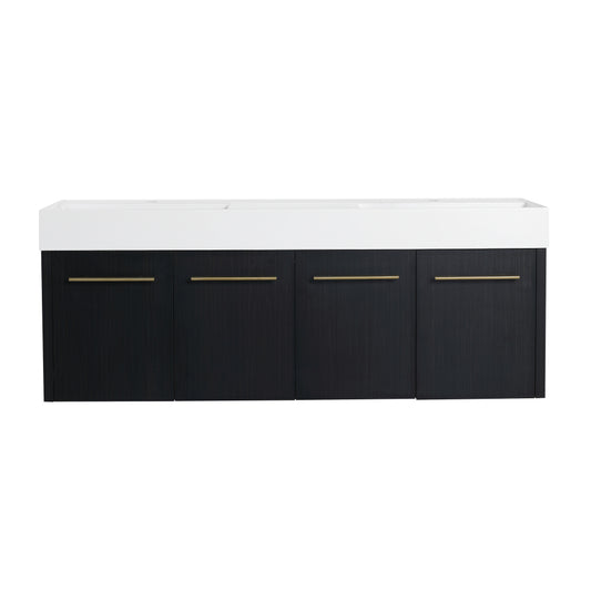 60" Floating Bathroom Vanity with Sink, Modern Wall-Mounted Bathroom Storage Vanity Cabinet with Double Black Quartz Sand Top Basins and Four Soft Close Drawers, EDI-Series Cement Grey 24V12-60GR