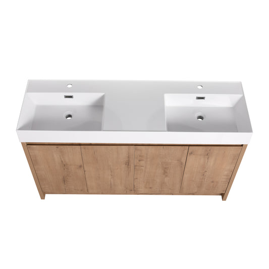 60" Freestanding Bathroom Vanity with White Double Resin Sink & 4 Soft-Close Cabinet Doors (KD-PACKING)
