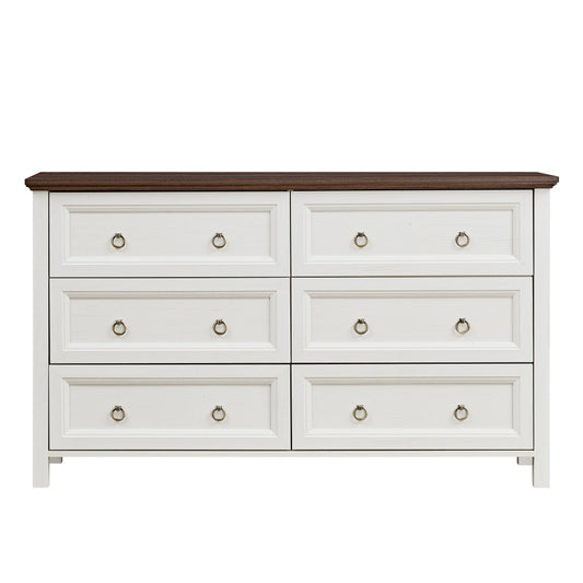 Farmhouse 6 Drawers Dresser for Bedroom, Wood Rustic Wide Chest of Drawers, Storage Dressers Organizer for Bedroom, Living Room, Hallway