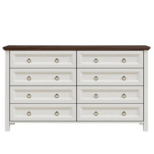 Farmhouse 8 Drawers Dresser Chests for Bedroom, Wood Rustic Wide Chset of Drawers,Storage Dressers Organizer for Bedroom, Living Room,Hallway