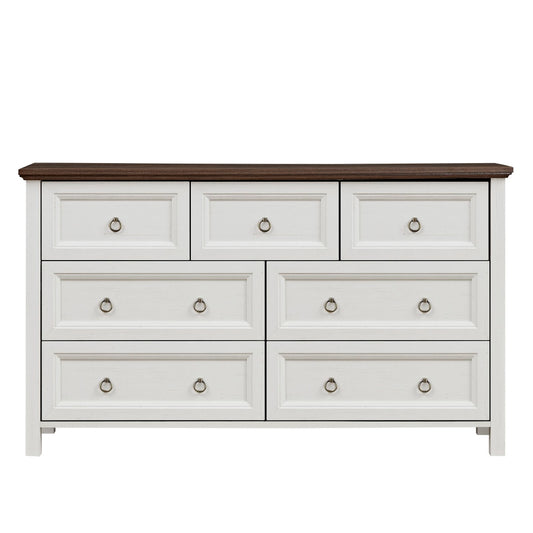 Farmhouse 7 Drawers Dresser for Bedroom, Rustic Chest of Drawers with Natural Texture, Vintage Design, Storage Dressers Organizer for Bedroom, Living Room, Hallway, Antique White