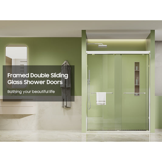 Framed Both Sliding Glass Shower Doors 60" Width x 76"Height with 1/4"(6mm) Clear Tempered Glass, Silver Finish, Big Rollers, Square Rail, Self-cleaning coating on both sides