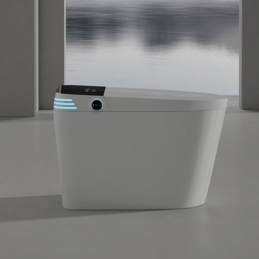 Tankless Smart Toilet With Bidet Built In, One-piece Bidet Toilet Seat, Auto Flush, Auto Open/Close,Heated Seat, Warm Water and Dry, Adjustable Temp,Remote Control Side Know, White with Black Panel