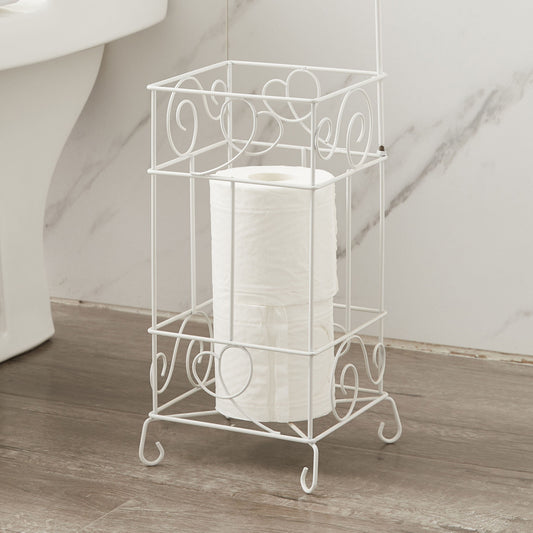 White Metal Frame Toilet Paper Holder Stand, Bathroom Tissue Organizer