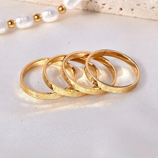Unique Design Fine Jewelry Sun Engrave Pattern Ring Stainless Steel High Quality 18K Gold Plated Couple Rings for Engagement