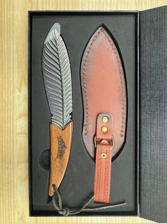 TerrainX Feather-Style Fixed Blade Knife with Premium Leather Sheath