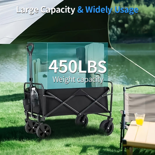 Foldable heavy-duty gardening trolley with all-terrain wheels for beaches, lawns, sports, and camping