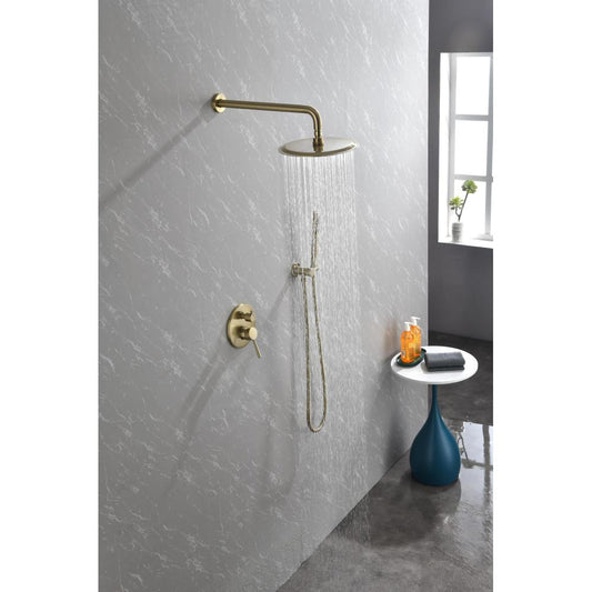 Shower System, Wall Mounted Shower Faucet Set for Bathroom with High Pressure 10" Stainless Steel Rain Shower head Handheld Shower Set, 2 Way Pressure Balance Shower Valve Kit, Brushed Gold