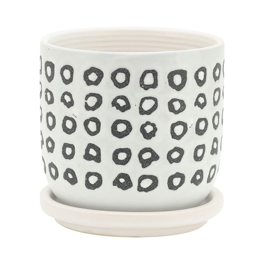 S/2 5/6" AZTEC PLANTER W/ SAUCER, BLACK