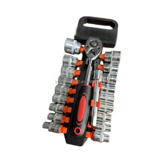 24-Piece Professional Chrome Vanadium Steel Socket Wrench Set Metric Sizes Ratchet Spanner Combination Auto Car Repair Tool Box