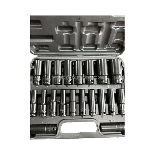 20 Pcs Drive OEM Cr-V Steel Metric Deep Impact Socket Set Lengthened Pneumatic Hexagonal Sleeve Combination for Repair Use
