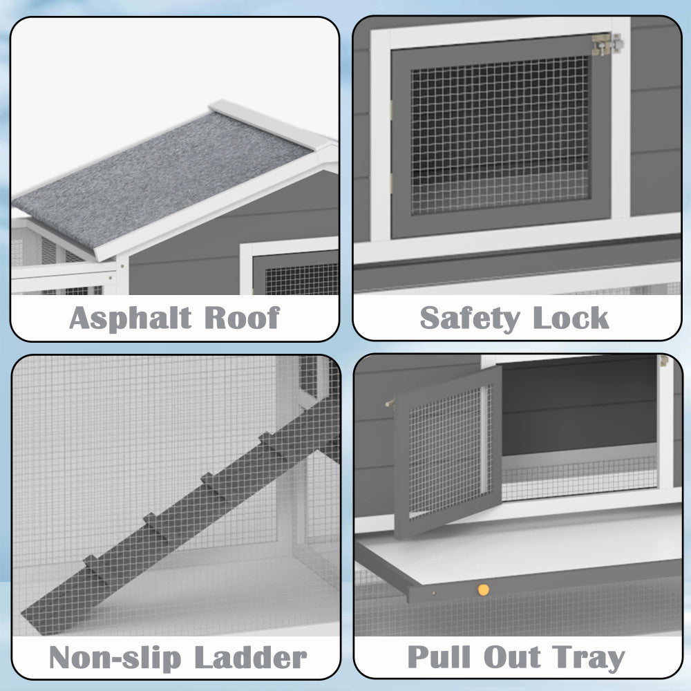 2-Story Large Wooden Rabbit Hutch Pet House with Ramps, Lockable Doors, Run Area and Asphalt Roof for Outdoor Use,Easy to Assemble and Durable with Cleaning Tray and Waterproof Roof
