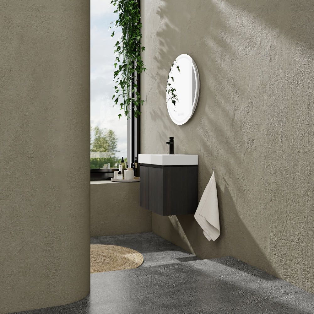 24 Inch Bathroom Vanity with Ceramic Basin, Wall Mounted Floating Vanity Sink Combo, Wooden Storage Cabinet with Double Doors for Bathroom,Black
