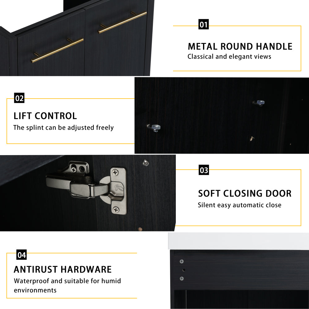 Vanity Base is made of high quality plywood that surface material used "Scratch & Water-Resistant" melamine, which is designed to not only withstand threats of moisture and humidity but also easy to clean and maintain.