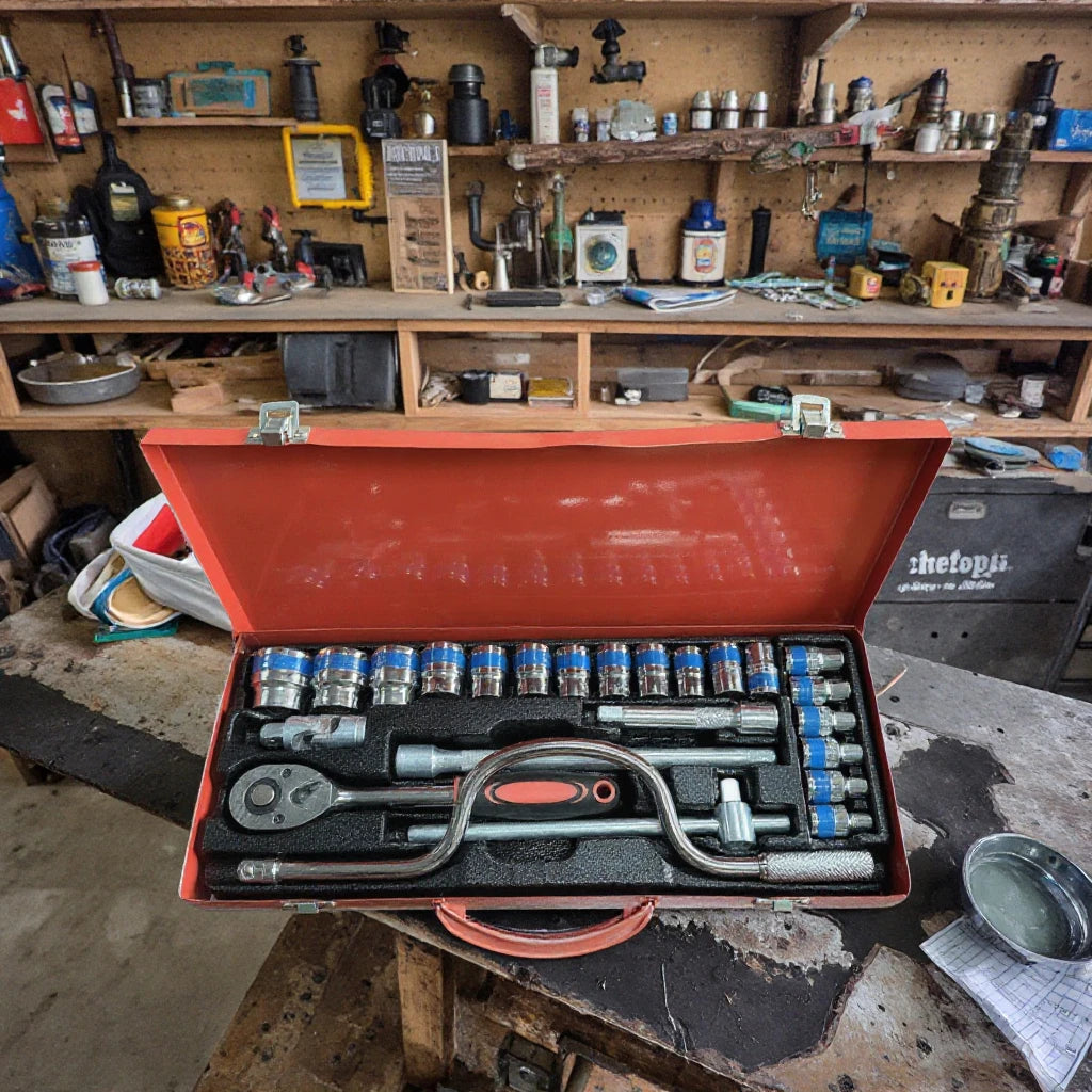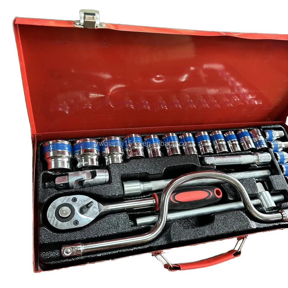 24-Piece Professional Chrome Vanadium Steel Socket Wrench Set Metric Sizes Ratchet Spanner Combination Auto Car Repair Tool Box