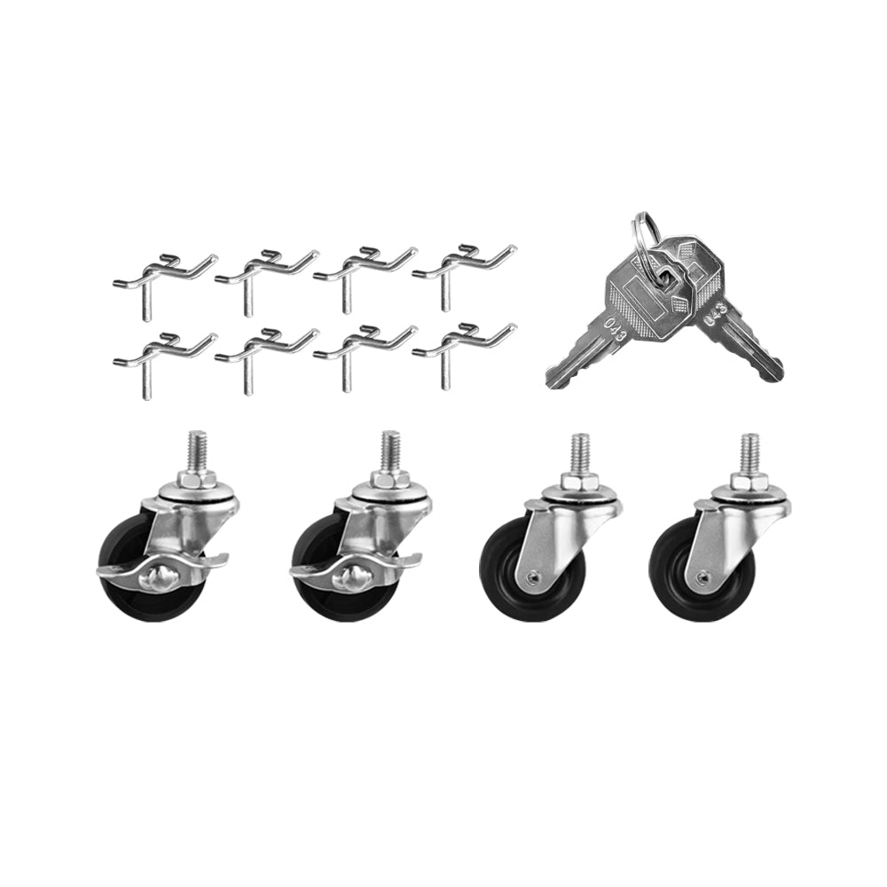 - 4 flexible universal wheels at the bottom allow the tool box to slide smoothly when changing position, saving time and energy. Two of the wheels are designed with braking function. When you need the rolling tool chest to be fixed in a certain position, it can stand still.