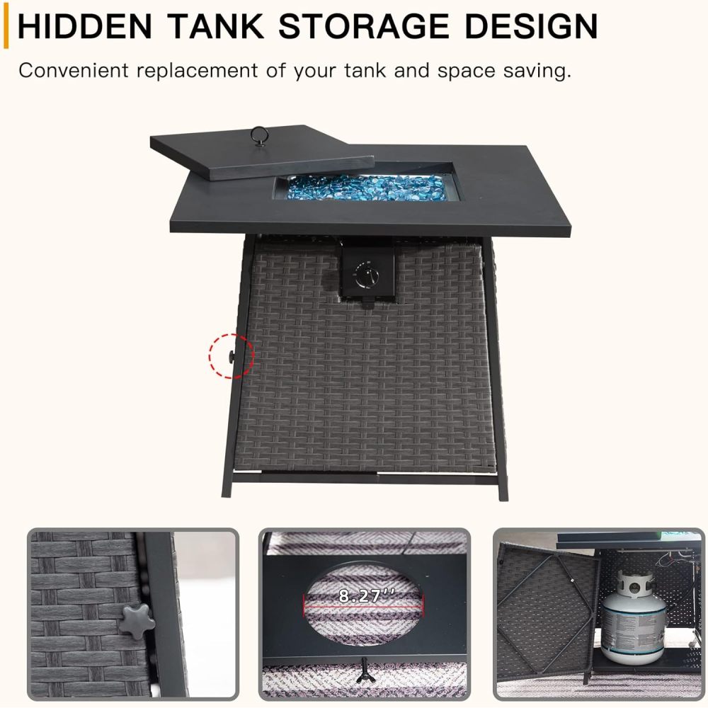 32 Inch Propane Fire Pits Table with Blue Glass Ball,50,000 BTU Outdoor Wicker Fire Table with ETL-Certified,2-in-1 Square Steel Gas Firepits (Dark Gray)