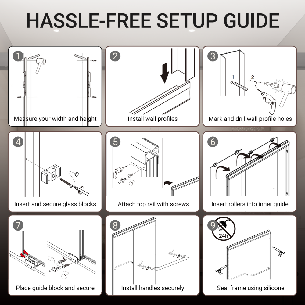 - Double Sliding Durable Frame: The high-quality aluminum frame enhances stability, while anti-collision corners protect the glass panels and ensure quiet operation.