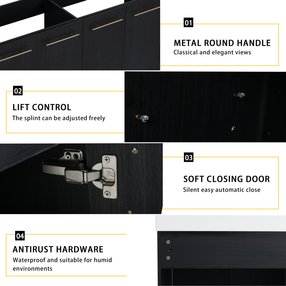 Vanity Base is made of High Quality "Eco-Friendly" Plywood that surface material used "Scratch & Water-Resistant" Melamine, which is designed to not only withstand threats of moisture and humidity but also easy to clean and maintain.