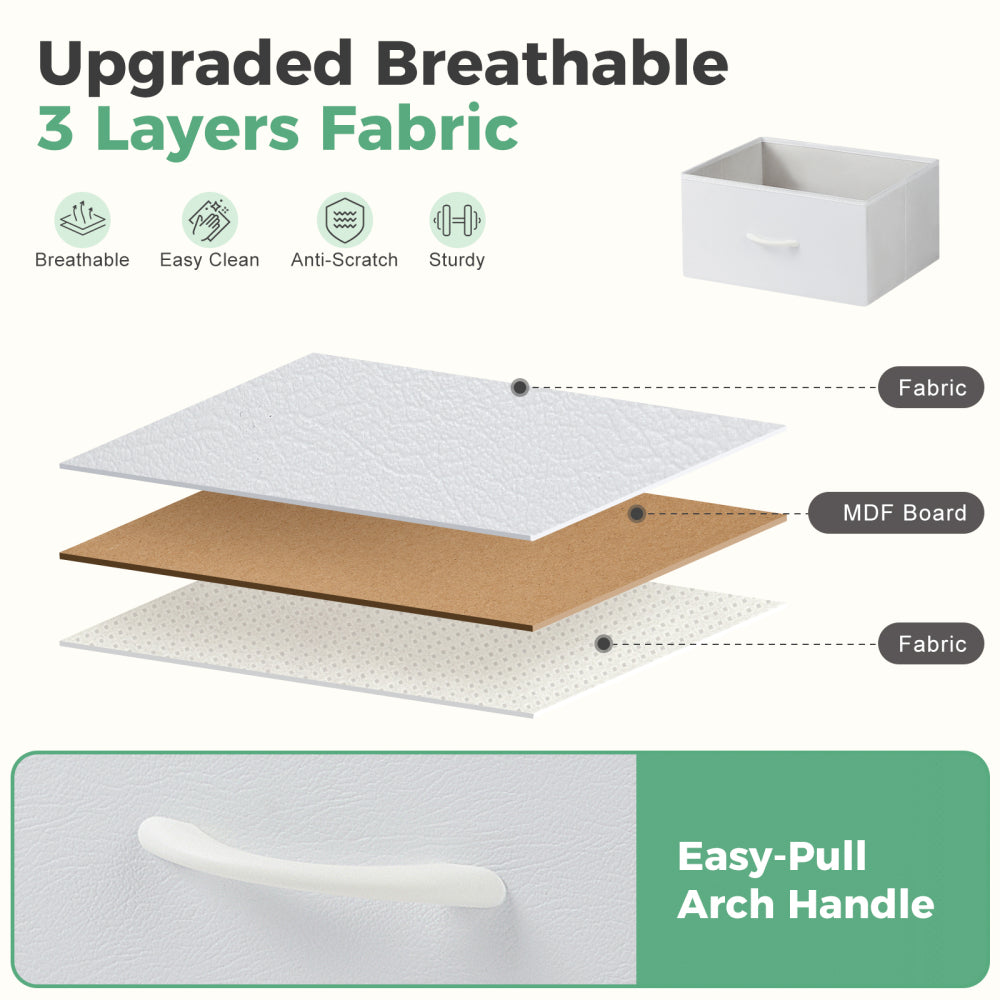 - 【High- quality Material】This fabric dressers for bedroom is made of cationic materials, all other sides and gaps are made of high-quality breathable, and non-woven synthetic fiber, harmless and wear-resistant, suitable for kids, teens, and adults. Easy-pull drawers for smooth sliding and closing. The bedroom dressers for easy cleaning, just wipe with a damp cloth and get it air-dried.