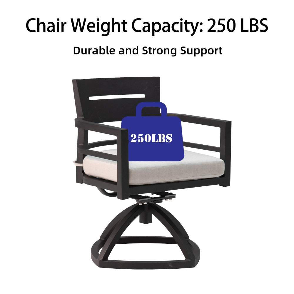 - Durable and lightweight aluminum material : At the heart of Patio Dining Swivel Chair lies a robust aluminum frame, meticulously crafted to withstand the rigors of outdoor use. This lightweight yet sturdy frame provides unwavering support while remaining remarkably easy to move and store. The aluminum construction is also inherently resistant to rust and corrosion, ensuring years of worry-free enjoyment.