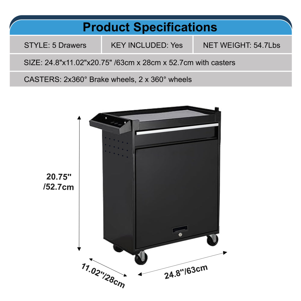 Tool Chest,5-Drawer Rolling Tool StorageCabinet with Enhanced Packaging, DetachableTop Tool Box, Metal Tool Cart for GarageWorkshop,Black