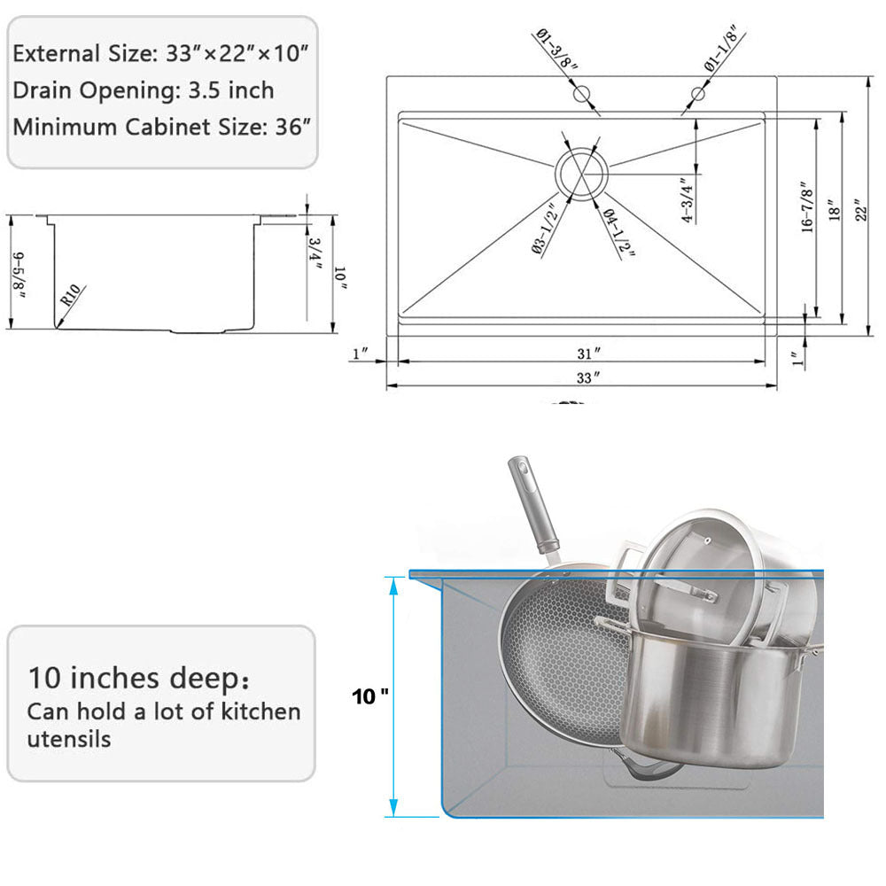 - This 33inch kitchen sink boasts tougher bulk, finer details, greater capacity.